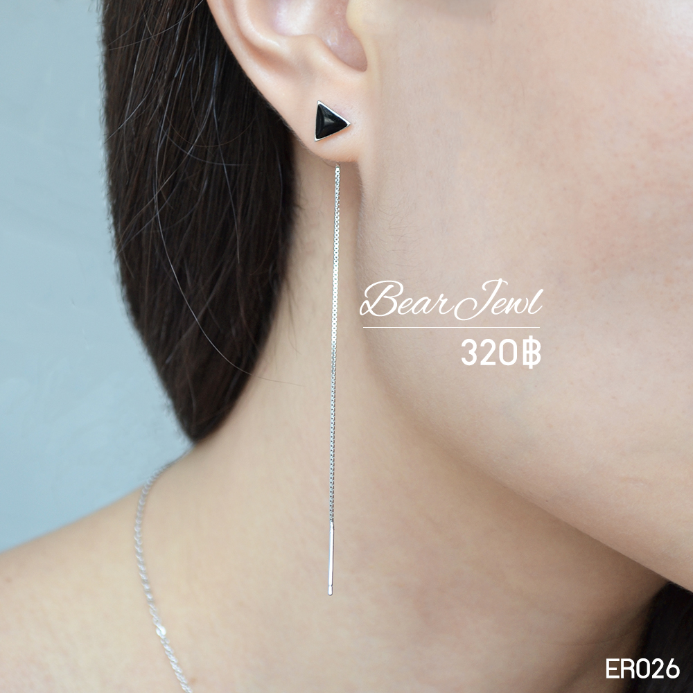 Black Triangle Silver Earring