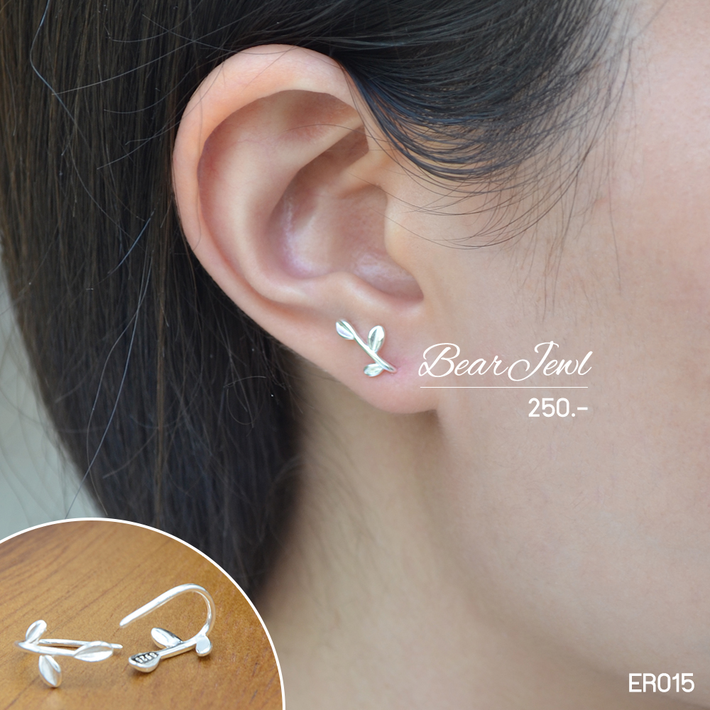 ต่างหูเงินแท้ กิ่งก้านใบไม้เงิน
